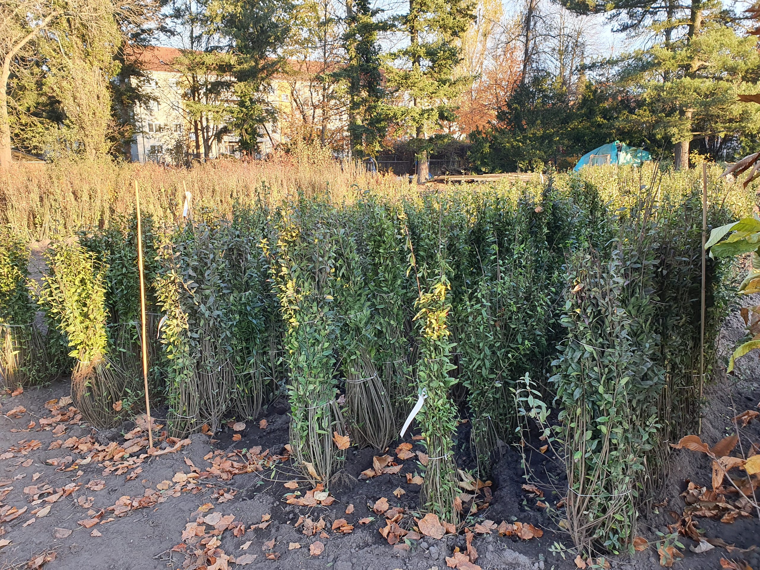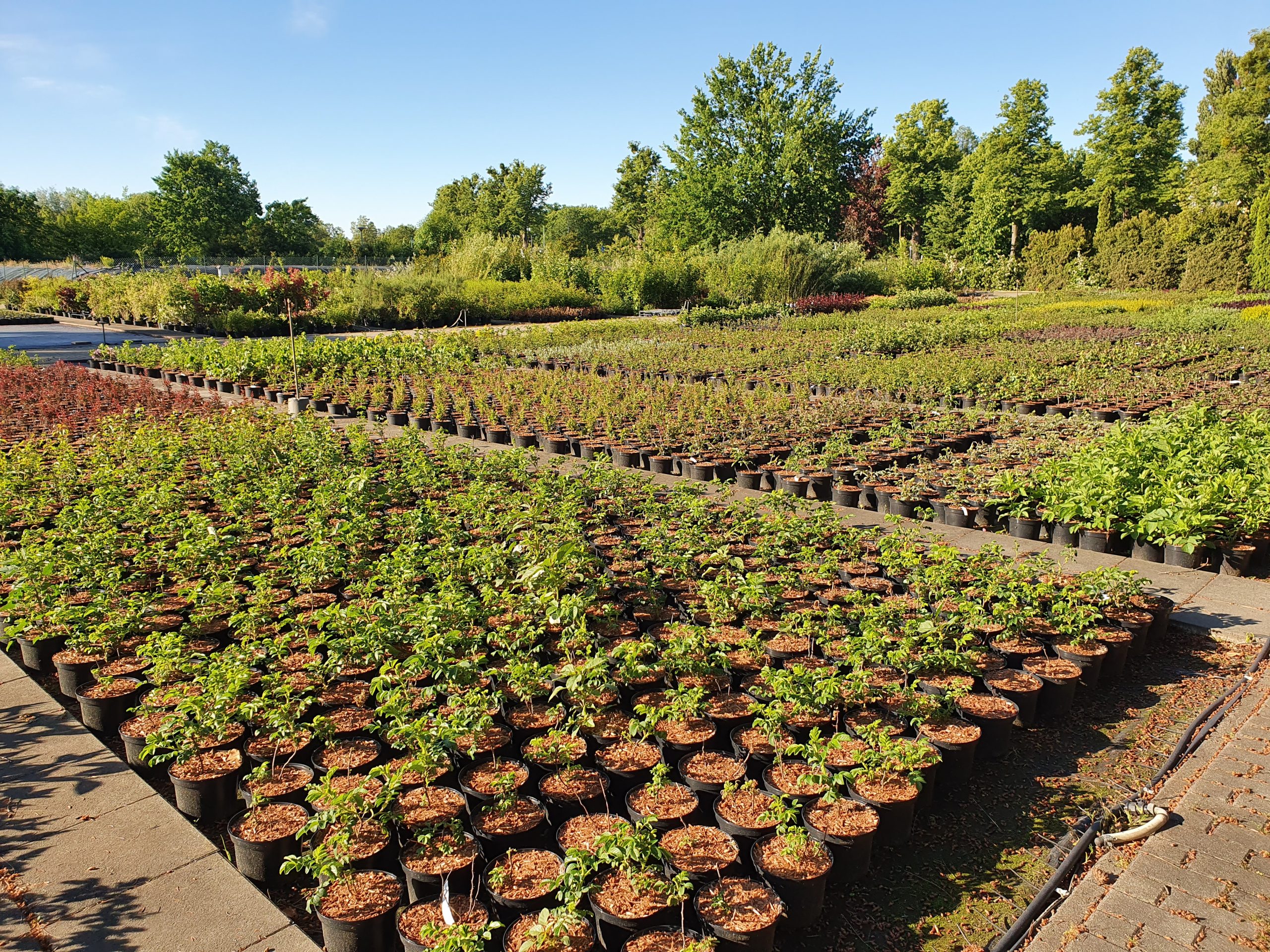 Seit 2023 verwenden wir in der Produktion ausschließlich torfreduzierte Topfsubstrate. Zur Düngung der Containerkulturen kommen vollumhüllte Depotdünger zum Einsatz, die über Monate die Nährstoffe gleichmäßig abgeben und somit nicht ausgewaschen werden.