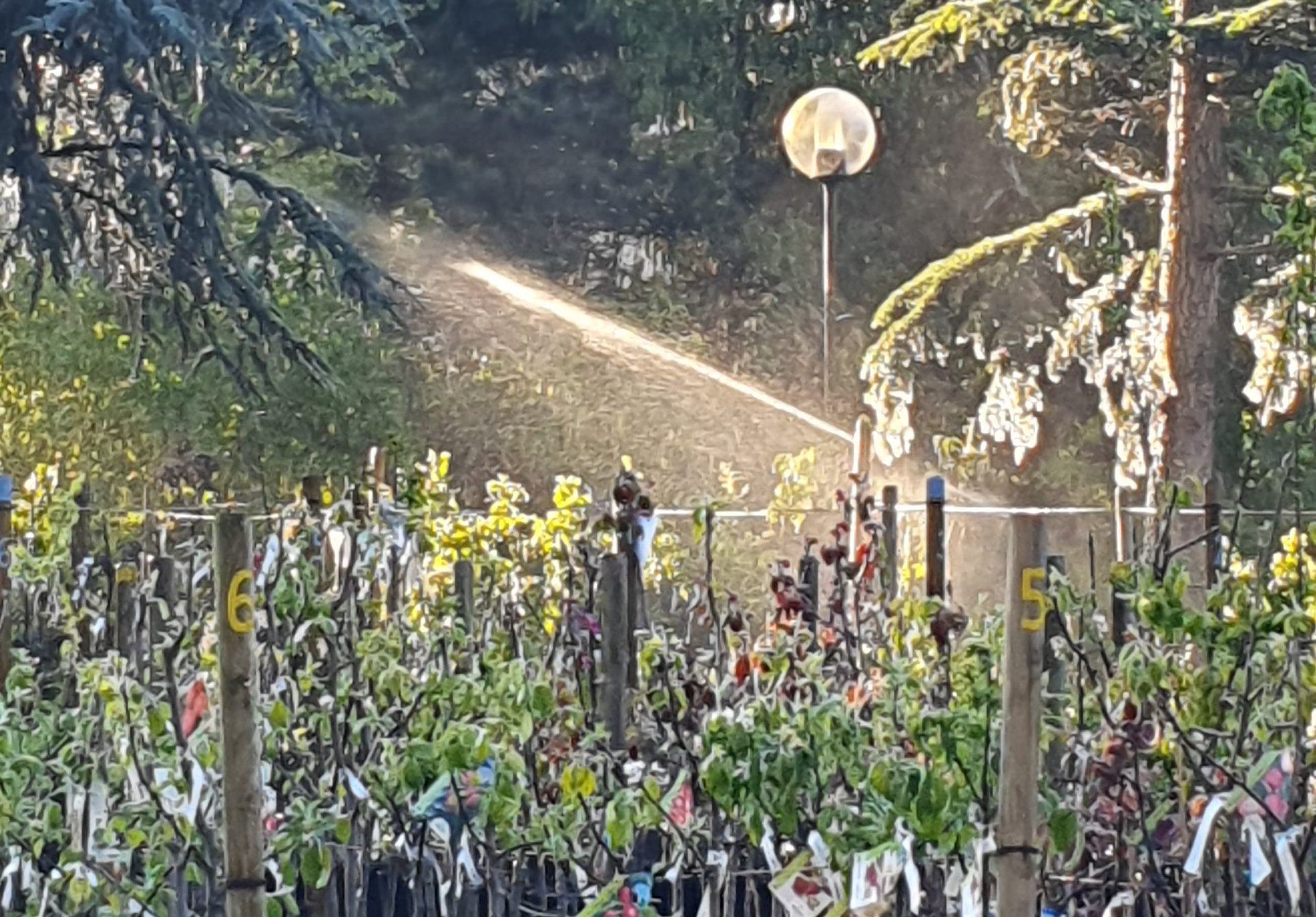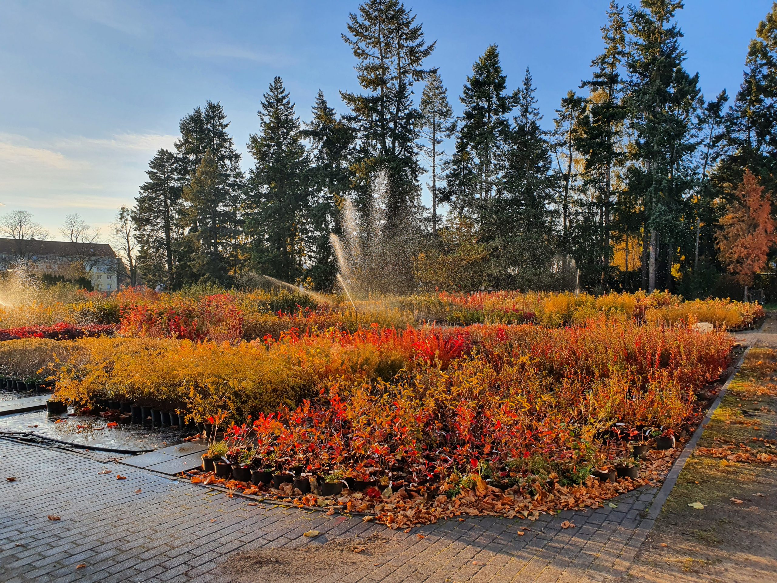 Die Alleebaum- und Solitäranlage in der Produktion sowie die Obst- und Stämmchenanlage im Verkauf wurden mit Einzeltropfern ausgestattet. Somit bekommt jede Pflanze gezielt die Menge Wasser, die sie braucht, ohne Verluste in die Umgebung.